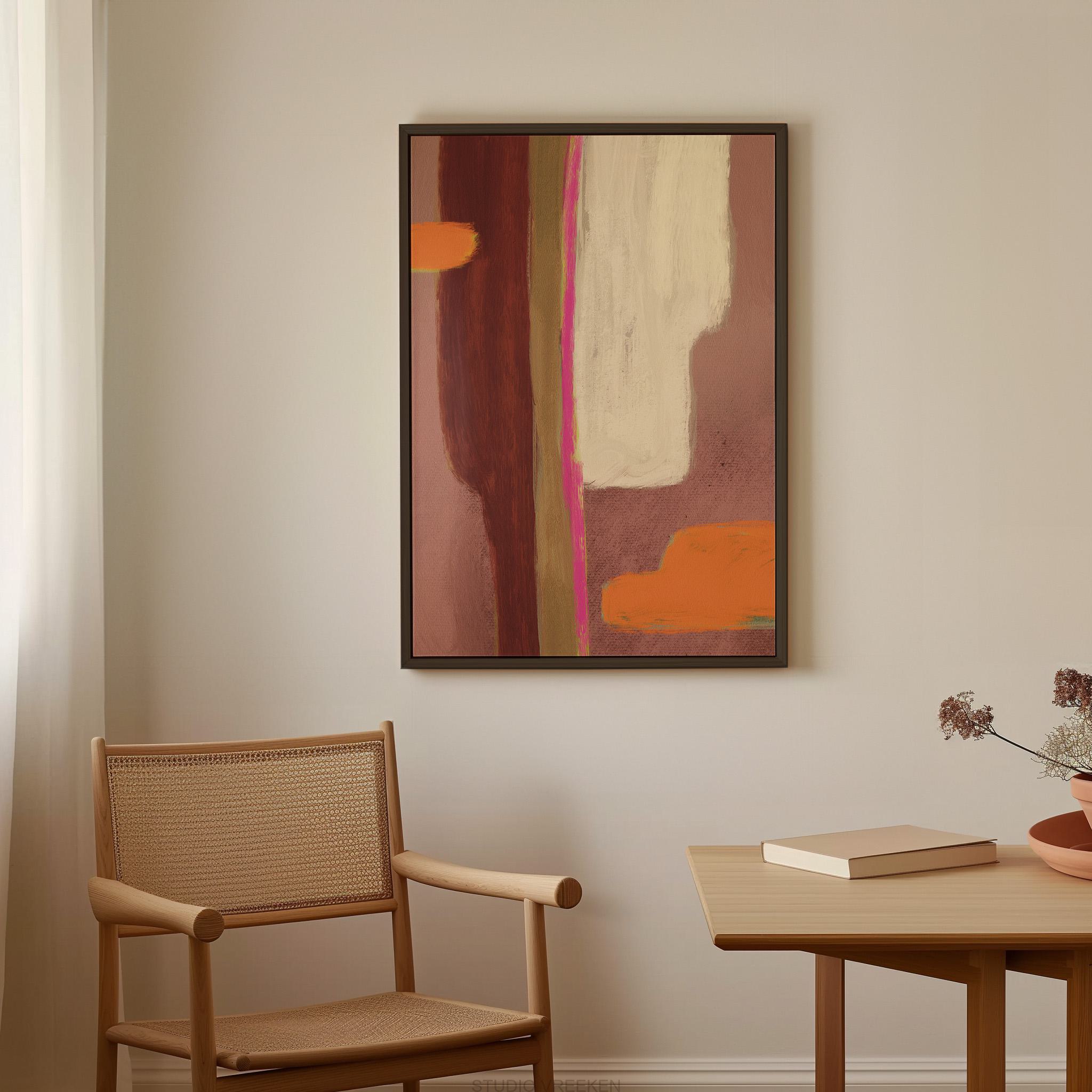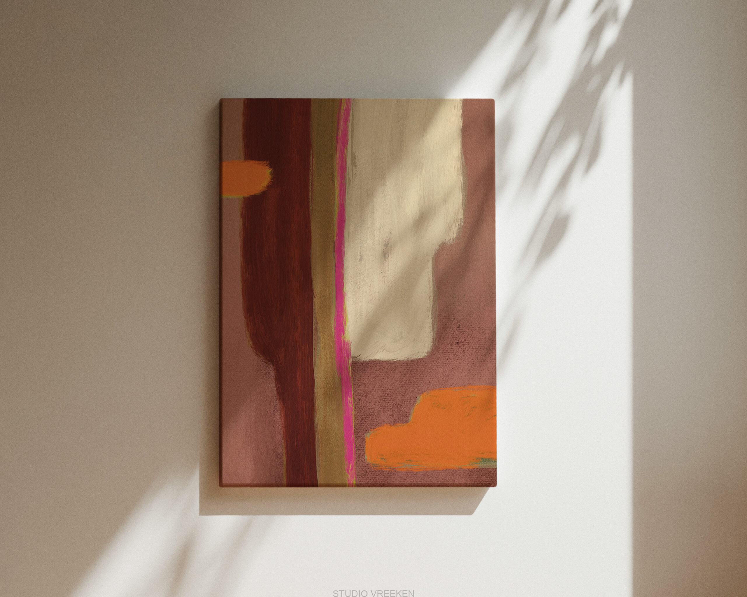Canvasprint ‘Abstracto 16’ is een verfijnd kunstwerk uit de collectie van Studio Vreeken. In mijn collectie werk ik met een terugkerend kleurenpalet, waardoor veel werken prachtig met elkaar te combineren zijn.