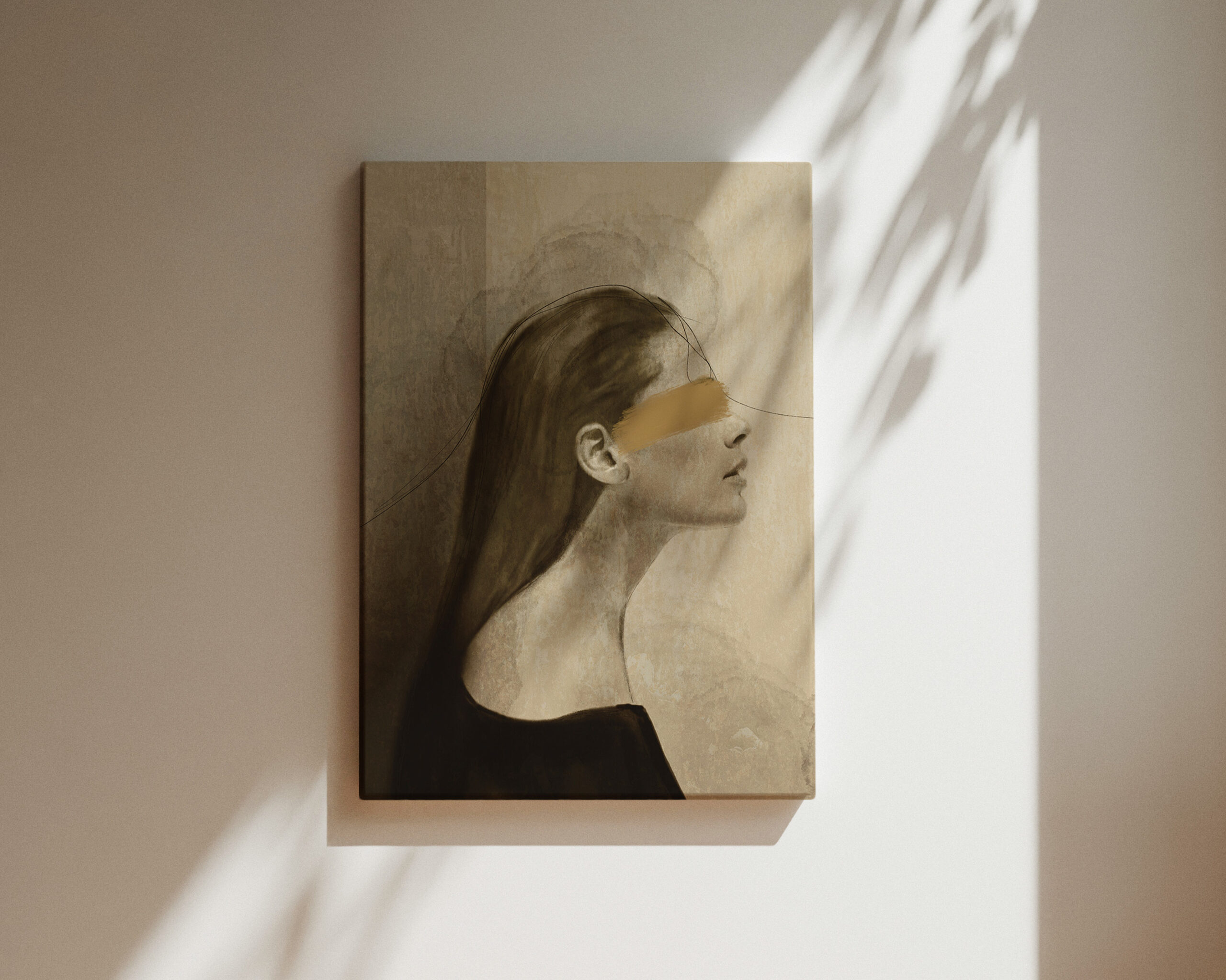 Canvasprint ‘In Her Mind’ is een verfijnd kunstwerk uit de collectie van Studio Vreeken. In mijn collectie werk ik met een terugkerend kleurenpalet, waardoor veel werken prachtig met elkaar te combineren zijn.