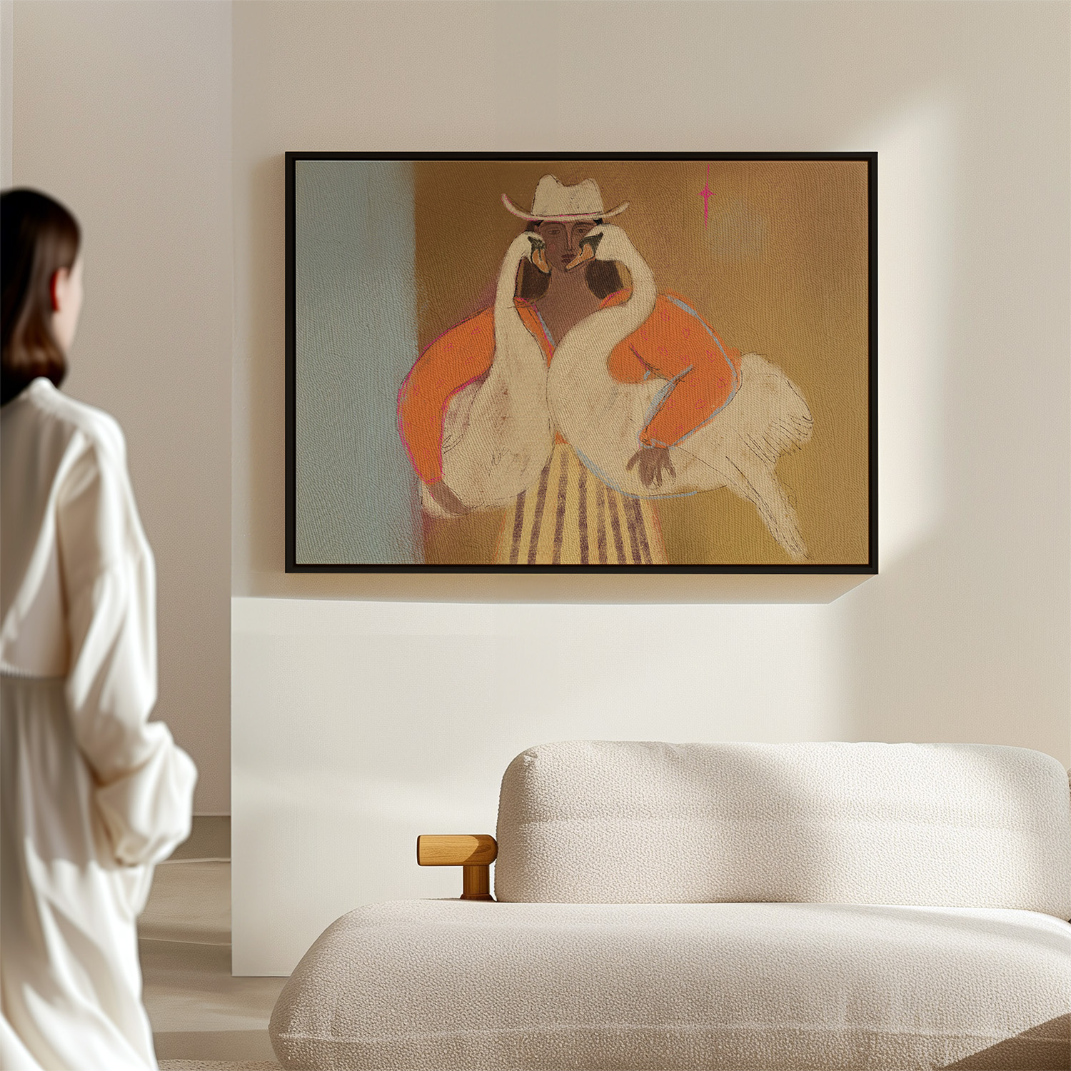 Canvasprint ‘Swan Lady Horizontaal ‘ is een verfijnd kunstwerk uit de collectie van Studio Vreeken. In mijn collectie werk ik met een terugkerend kleurenpalet, waardoor veel werken prachtig met elkaar te combineren zijn.